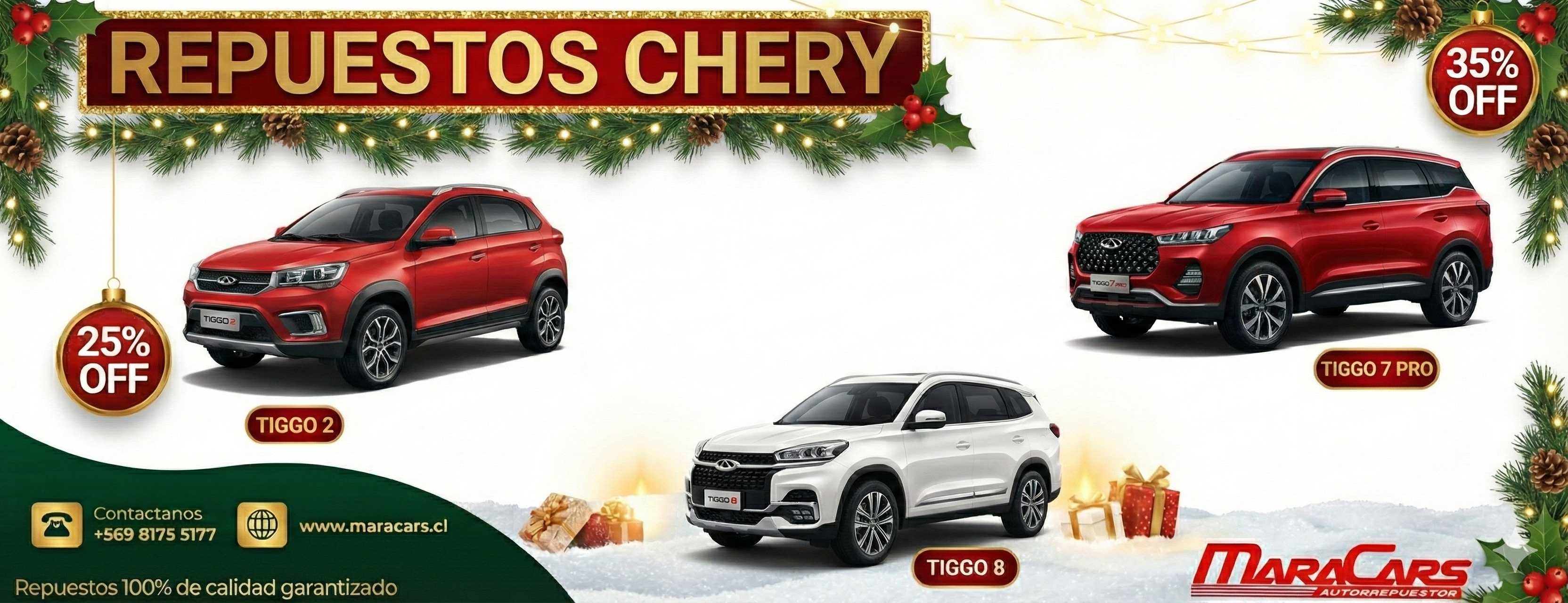 Compra repuestos Chery para modelos Arrizo, Face, IQ, Tiggo8, Tiggo2 y más. Envíos a todo Chile. Originales y alternativos. ¡Calidad garantizada en Maracars!