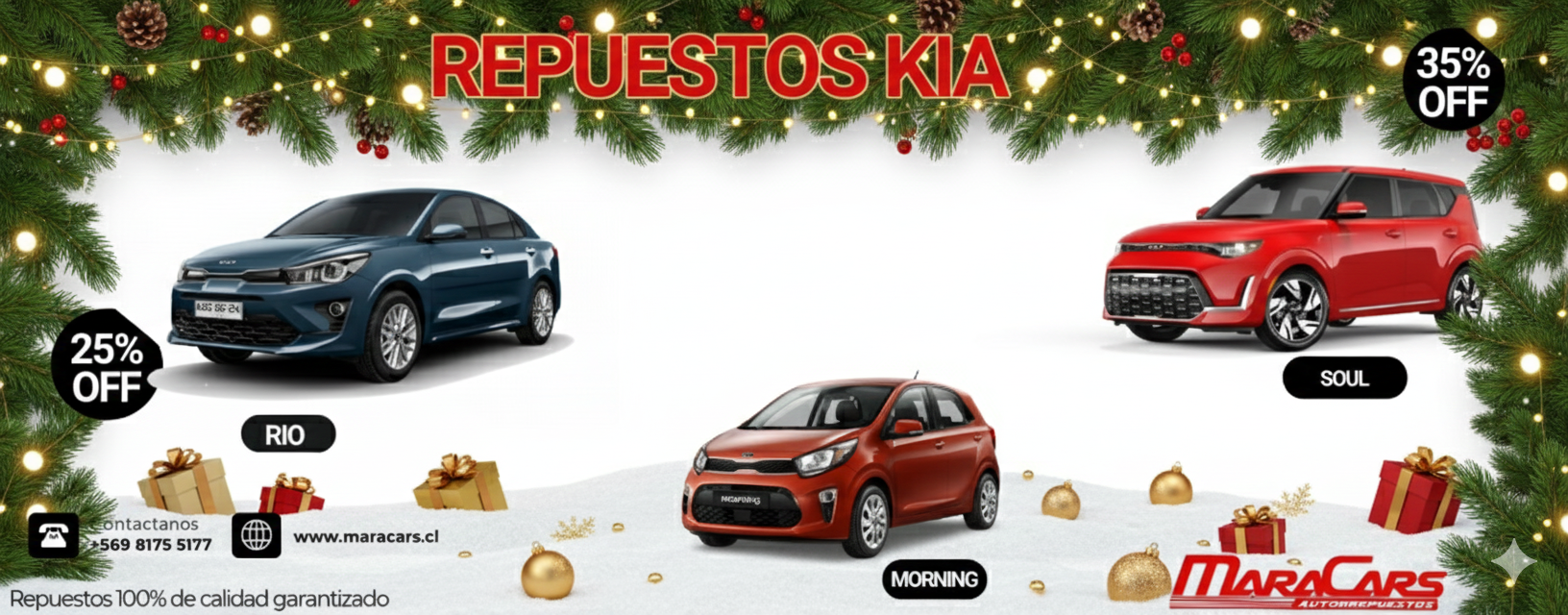 Compra repuestos Kia para Morning, Rio, Frontier, Soluto y más. Envíos a todo Chile. Originales y alternativos. ¡Calidad garantizada en Maracars.cl!